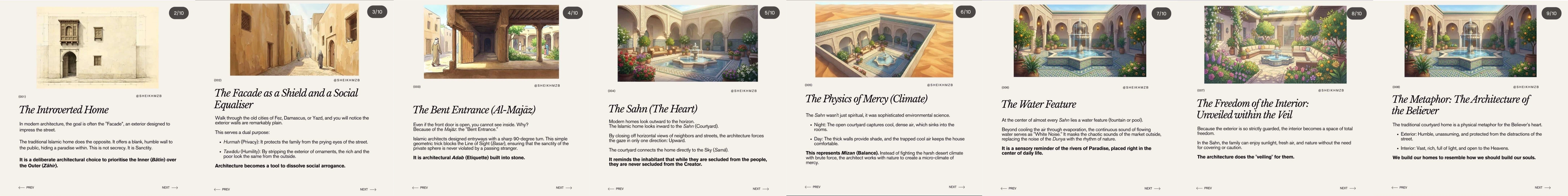 At its deepest level, the Islamic home was a metaphor for the believer. The exterior remained humble and guarded. The interior was expansive, illuminated, and open to the heavens. The Prophet ﷺ said: “Verily, Allāh does not look at your appearance or your wealth, but He looks at your hearts and your deeds” (Muslim). The architecture mirrored this spiritual truth. The ṣaḥn was not just a courtyard. It was the heart. The fountain was not merely cooling water. It was a reminder of Jannah. The bent entrance was not only design. It was character.
